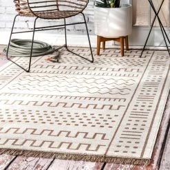 World Market Copper and White Geometric Stripe Lucca Indoor Outdoor Rug