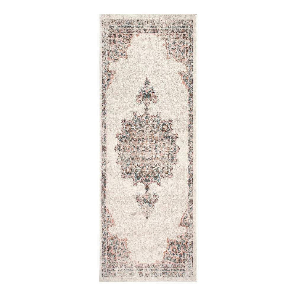 Put it in neutral with our traditional floor runner, rendered in shades of beige, tan and brown with hints of blue. This floor covering gets its vintage vibe from a center medallion motif that’s repeated in smaller scale around the edges. Available in two lengths, you can choose the perfect size for your hallway, kitchen or other high-traffic area.