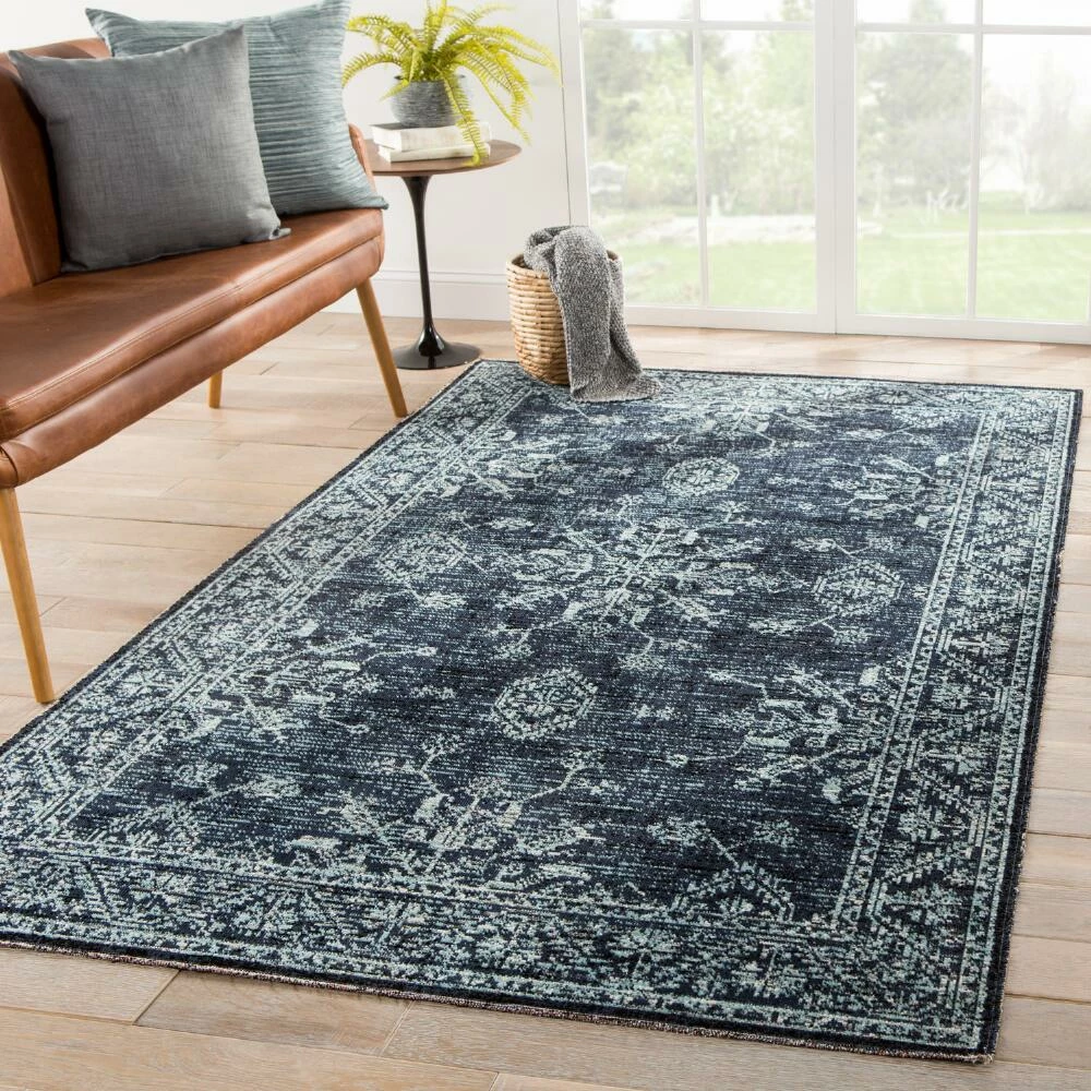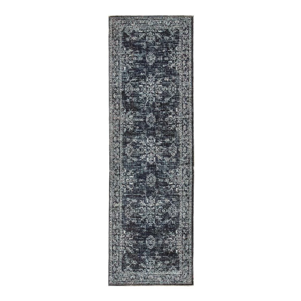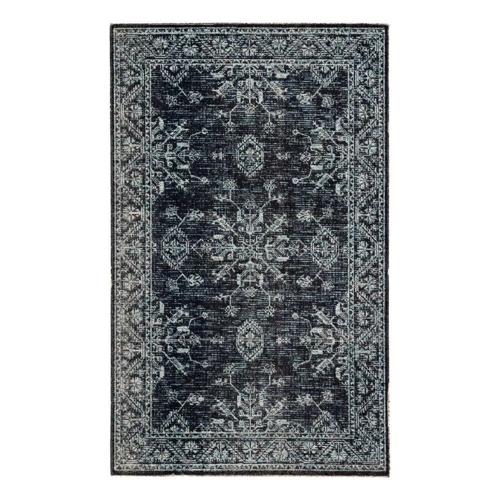 Featuring a blue medallion design with floral flourishes on a black and dark-blue background, the Kiya indoor-outdoor rug has vintage-style sophistication. Taking inspiration from traditional Oriental-rug patterns, this gently distressed accent is easy to clean, pet-friendly and resistant to fading. Available in standard and floor-runner sizes, this versatile area rug is also weather-resistant for the deck or patio.