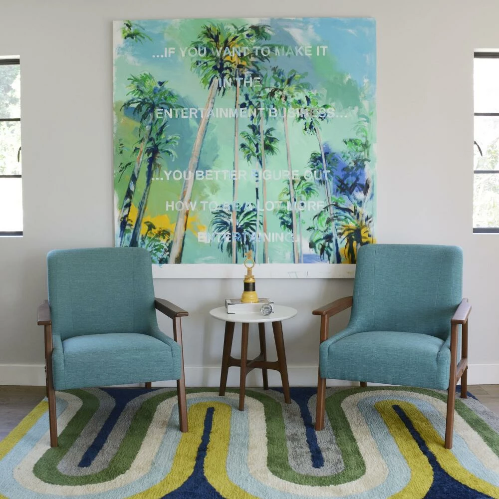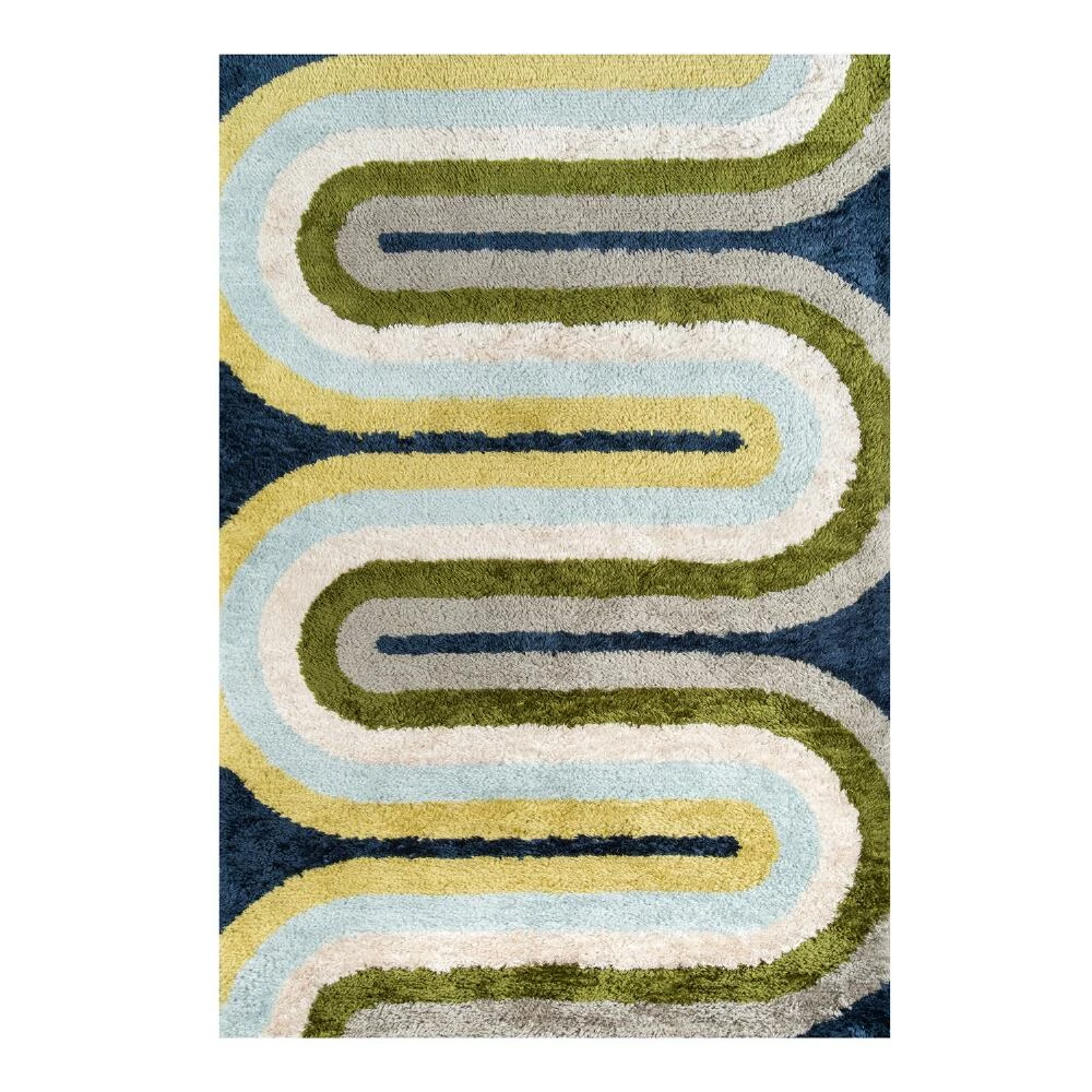 Allow the ebb and flow of the curved geometric lines on the Retrograde area rug to pull admirer’s eyes in and through your space. Reminiscent of ’70s modern-art motifs, the colorful pops of chartreuse yellow, green and blue on this hand-tufted piece set a cool tone in any room you choose.