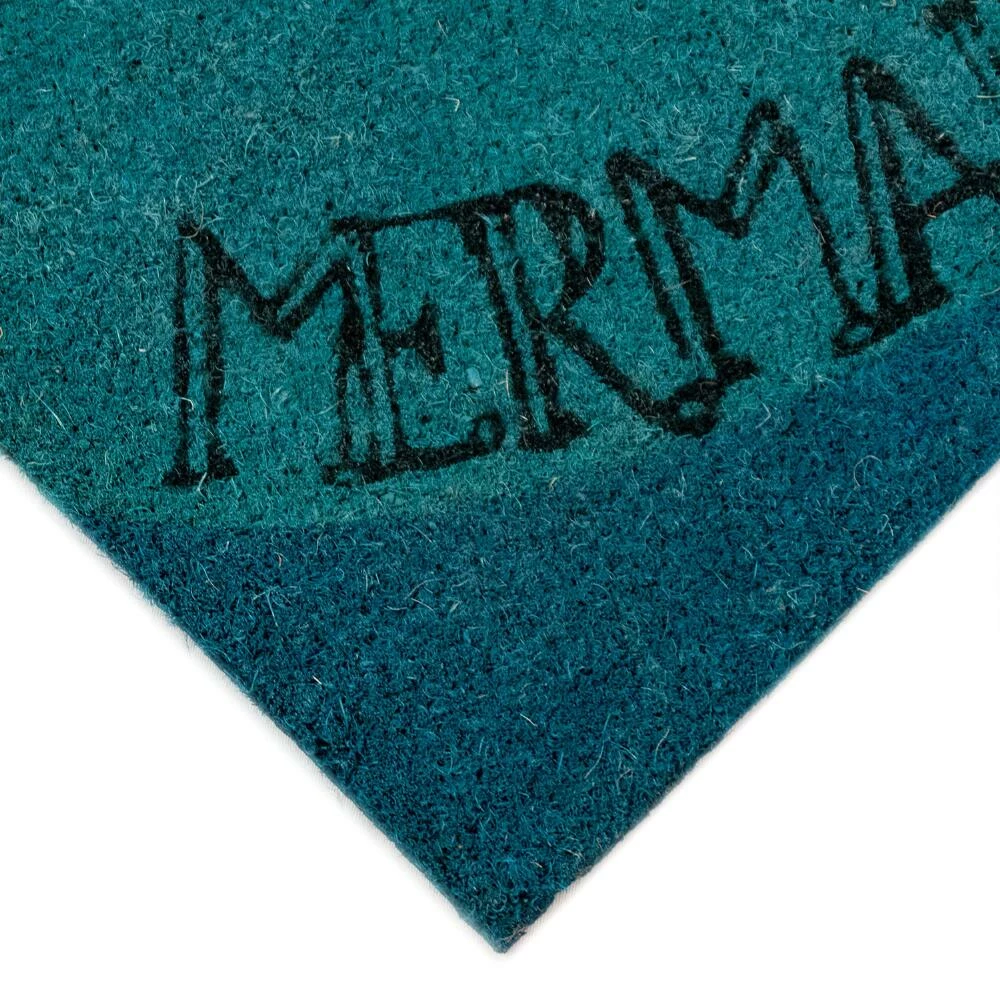 Bring the whimsy of mythical mermaids to your doorstep with our sea-inspired mat. Finished with an array of blue-toned waves and the phrase “Mermaids welcome,” this durable doormat is crafted from tough coconut husk fibers to brush debris from your shoes.