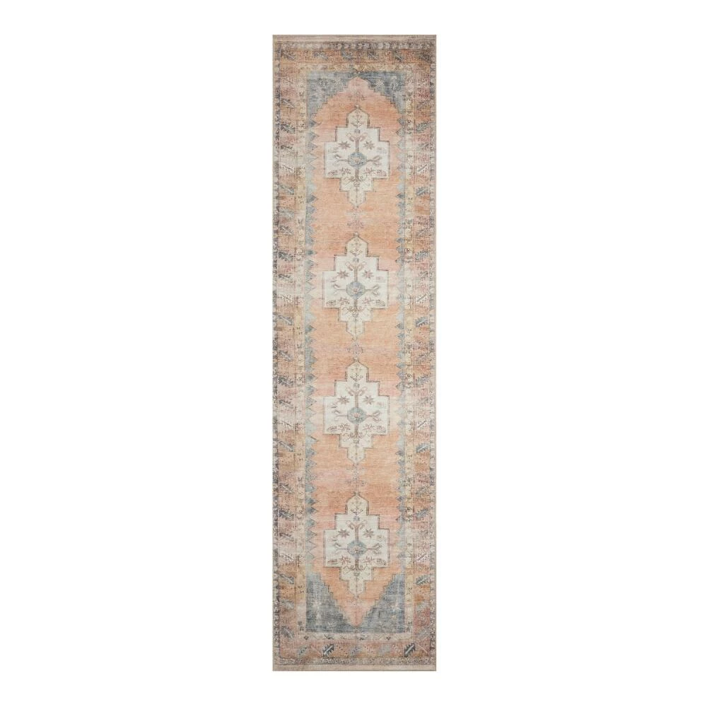 Featuring a Persian-style design in blush and blue tones with peach and sage-green accents, our exclusive Chelsea area rug is a soft-hued achievement. Expertly flatwoven by artisans of polyester with a distressed finish, this vintage-inspired rug offers a high-end look.
