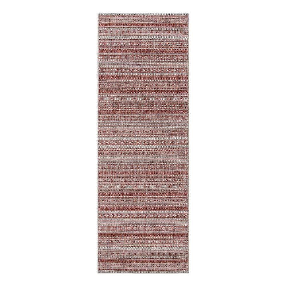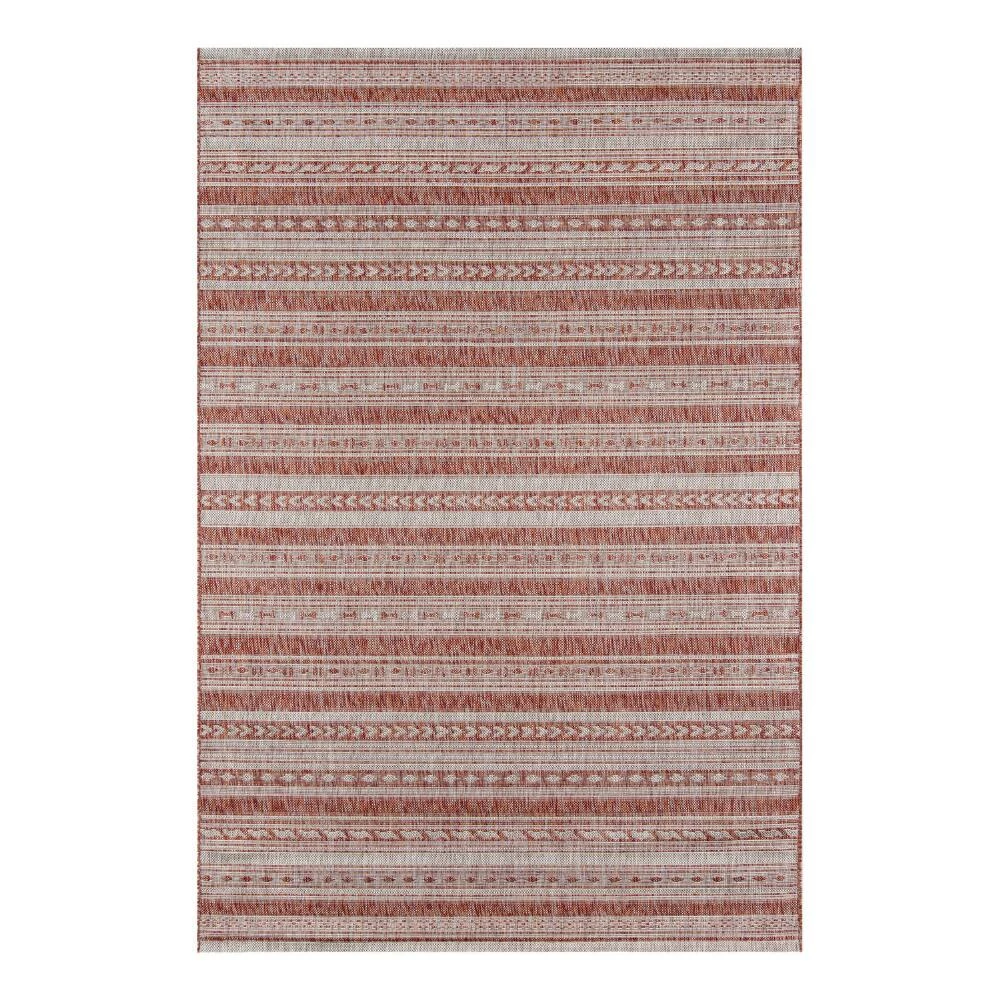 Featuring a chic blend of geometric white stripes on a rust-copper background our flat-woven indoor-outdoor rug is a fun and refreshing mix of traditional patterns. Easy to clean, safe for pets and surprisingly soft underfoot, it’s a versatile piece that adds an eye-catching look to decks, patios, courtyards and other high-traffic areas.