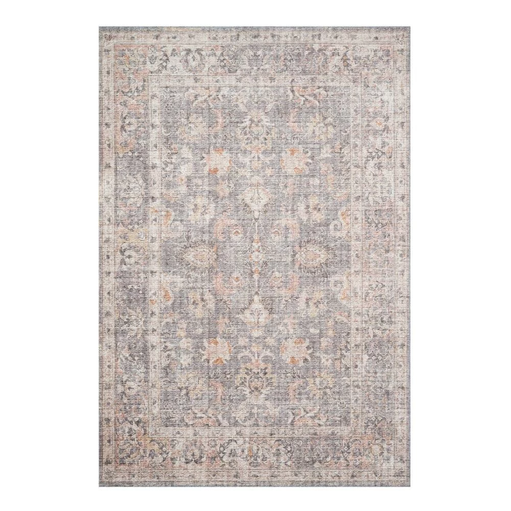 Inspired by vintage old-world carpets, this Icaria area rug is printed with a timeless Persian-style design in neutral gray and soft apricot hues. Crafted of 100% polyester, this traditional rug has the same classic texture of traditional high-end rugs with a much greater durability. A comfortable and resilient accent for high-traffic rooms in the home, the intricate pattern of this area rug is easy to keep clean.