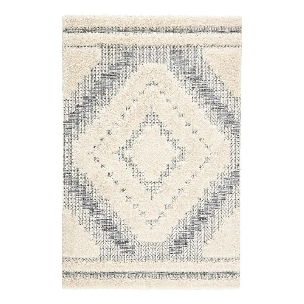 Blending a boho-inspired shaggy texture with a traditional flat-woven kilim, the Hilo indoor-outdoor rug features a diamond design in neutral gray and cream. Ideal for updating high-traffic areas with its pleasing mix of high and low piles, this unique foundation is easy to clean, suitable for homes with children or pets and a beautiful addition to the deck or patio.