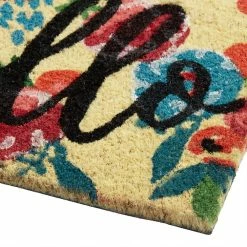 Bidding guests a cheerful “Hello” in black cursive script, our exclusive coir doormat presents visitors with a bright selection of colorful flowers on a natural background. Tufted of durable coconut-husk fibers, this tough greeting mat will keep its vibrant blend of primary colors in bloom and features a PVC backing to keep it safely in place.