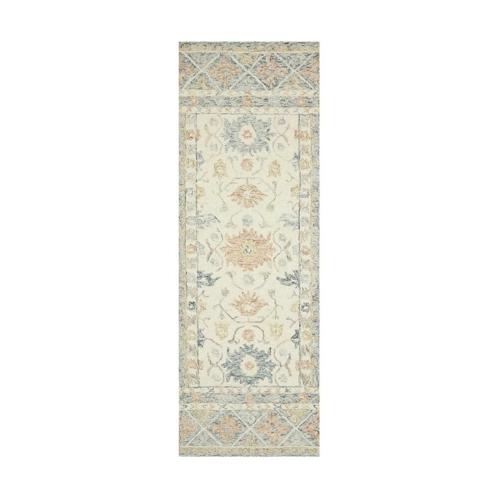 Hooked of 100% wool, our soft area rug features a delicate floral pattern in blue and terracotta hues on an ivory ground. Variegated color details add to the Nora’s ability to bring a room together with an elevated edge. Choose from an array of sizes that will fit any room, including two runner lengths for your hallways and tight spots.