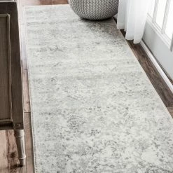 Featuring a distressed, vintage-inspired design on an ivory ground, our area rug adds effortless sophistication to any space. Available in a wide array of sizes, it’s easy to find the perfect fit for your room setting.