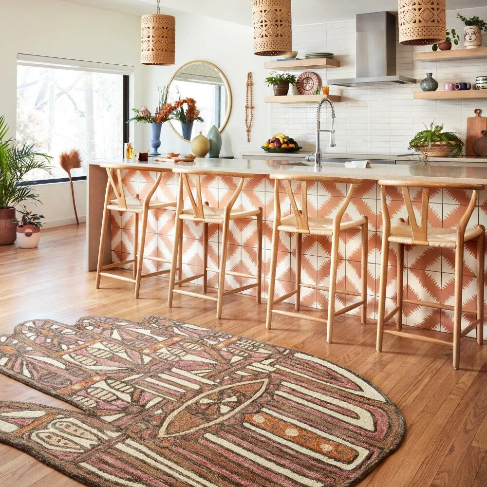 Created by Jungalow founder Justina Blakeney, this artistic hand-shaped hamsa rug embodies her ethos that living energies make a house a home. A collaboration with the masterful weavers at Loloi, Blakeney has reinvigorated an ancient symbol of protection, good health and happiness for modern homes. Hand-hooked of 100% wool in a choice of colors and sizes, this gorgeous Chaya area rug blends an iconic design with luxurious texture.