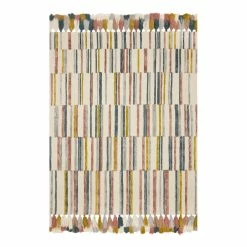 Famed for her lively boho style, Jungalow founder Justina Blakeney creates home decor embodying her belief that color has the power to bring great joy. Designed in partnership with the artisan weavers at Loloi, the Jamila area rug showcases the exuberance of color with offset stripes and layered tassels in an array of hues. Hand-hooked of 100% wool in a choice of bold colors and sizes, this eclectic rug is a playful addition to any room.