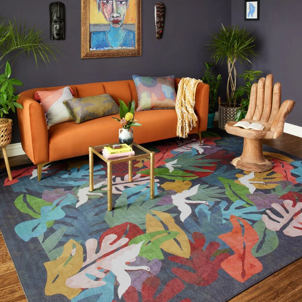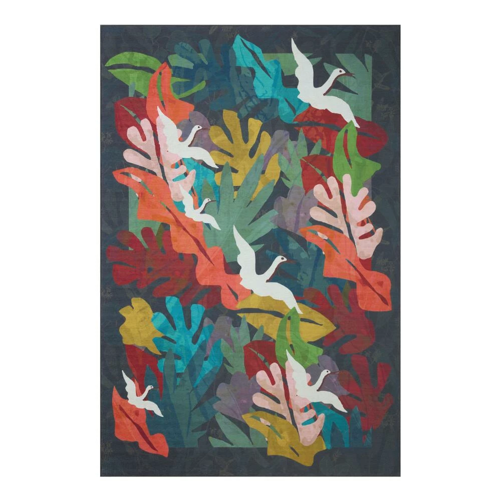 Created for Loloi by celebrated Jungalow founder Justina Blakeney, the Pisolino rug brings layered tropical motifs to your living room, balcony or patio. Alive with wild, jungle-inspired creativity, it features bold-hued leaves and elegant white birds rising from a dark backdrop. Embodying Blakeney’s ethos that pattern is the spice of life, this durable rug is an alluring addition to high-traffic areas in both indoor and outdoor spaces.