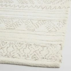 Hand-looped and tufted of uncut wool pile for a sumptuous underfoot feel, our Kelsey area rug features a neutral-toned diamond design on an ivory ground. This central diamond design is embellished with zigzag, stripe and crisscross borders.