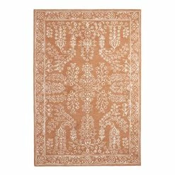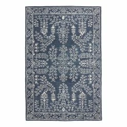 Tufted of wool with a loop pile in dark blue or warm adobe, our Mila Persian-style area rug features an ivory floral design elevated by the raised texture of silky viscose. Plush and sumptuous underfoot, this exclusive rug is a vintage-inspired foundation for the living room or bedroom with its inviting hues, ornate patterning and cozy depth.