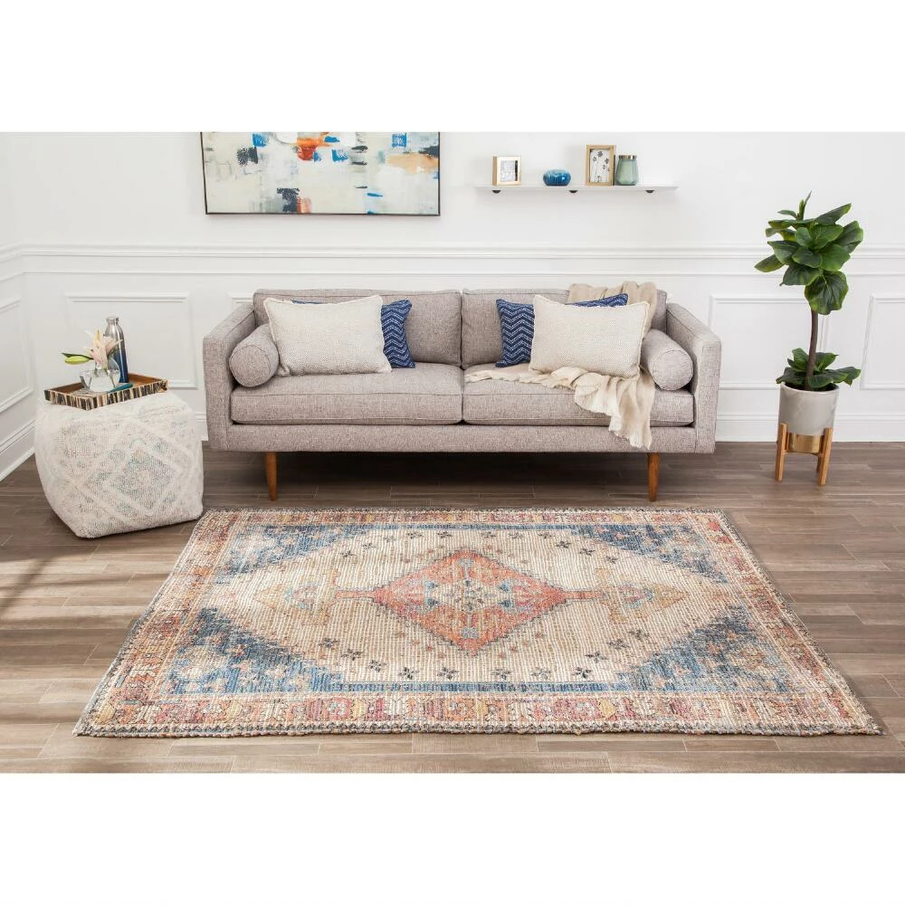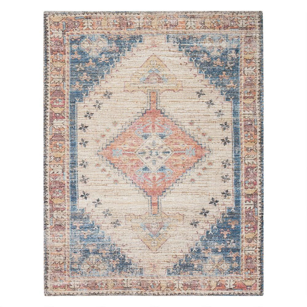 With a distressed Persian-style design in soft red, blue, ivory and beige tones, the Beso area rug is handwoven of durable jute and plush cotton. Comfortable, hardwearing and suitable for high-traffic rooms, this flatweave rug updates your home with a vintage-inspired pattern in chic muted hues. GoodWeave-certified to support ending child labor in the rug industry, this handmade artisan accent promotes safe working conditions worldwide.