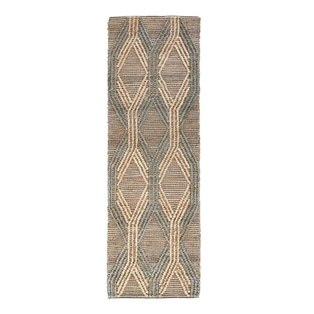 Create a contemporary, texture-rich foundation for your favorite room with this jute and cotton area rug. Handcrafted in India, it weaves earthy natural and cool mineral-blue hues together in an inviting lattice design.