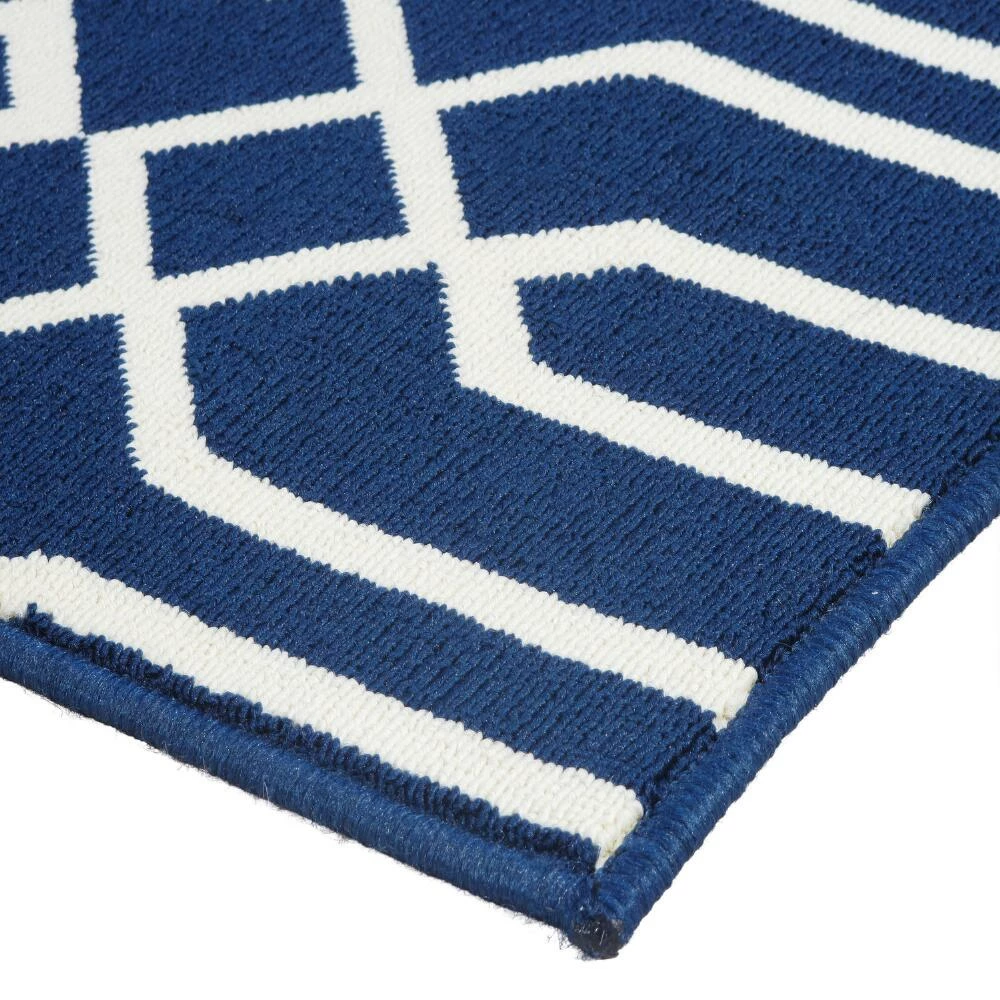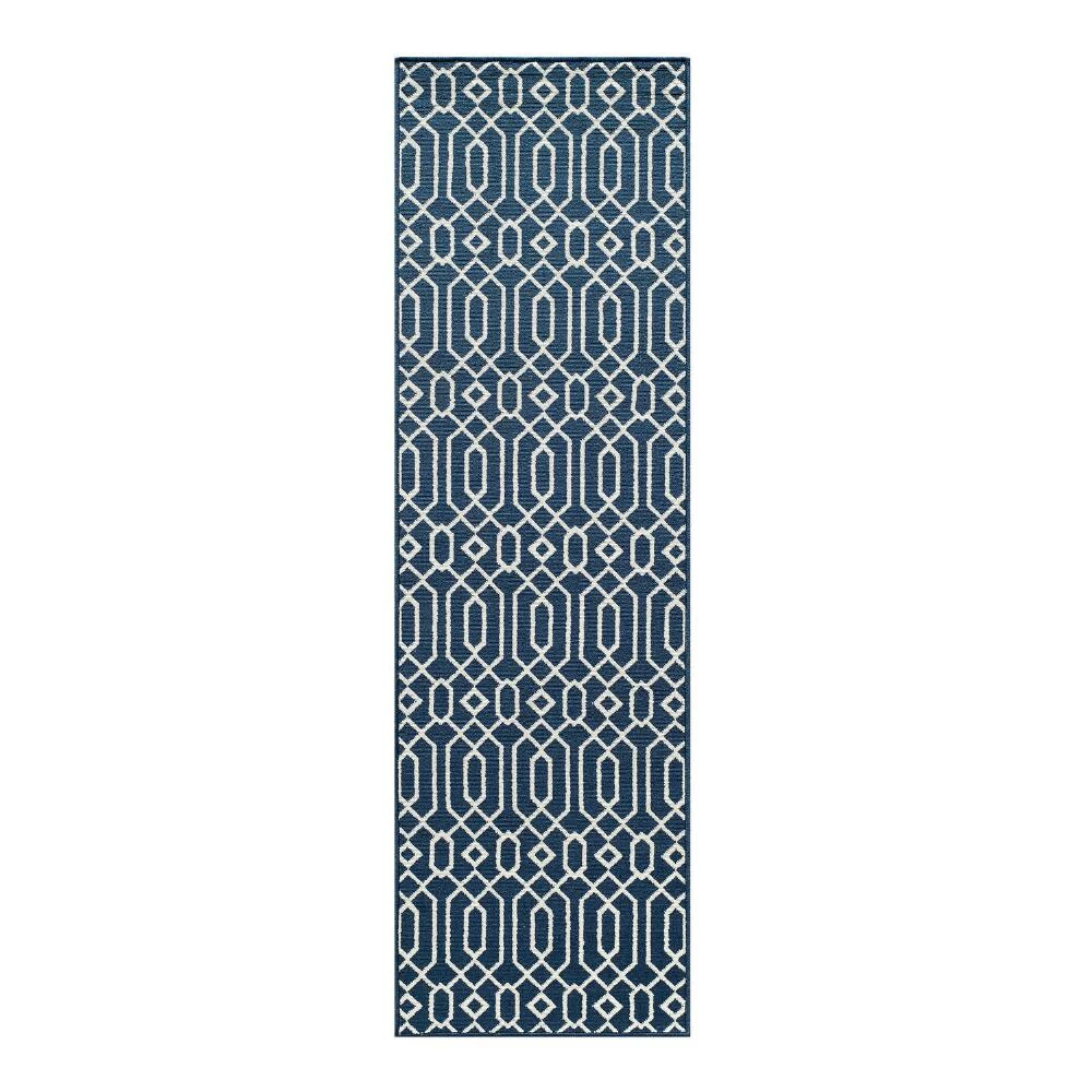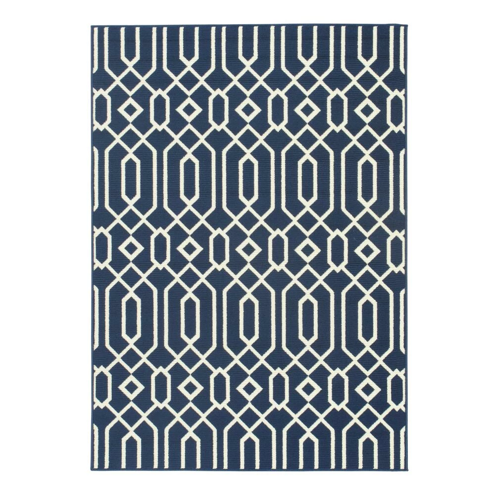 Featuring an intricate lattice design in white on a rich navy blue ground, the Cortes indoor-outdoor rug is antimicrobial, stain-resistant and easy to clean. Place this geometric foundation on your deck, patio or in high-traffic indoor spaces to add an instant pattern update and a pop of color.