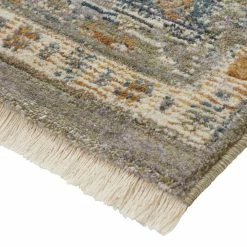 Featuring traditional Persian-style motifs on an earthy green-gray ground, our large Nora area rug combines a high-end vintage look with an easy-care construction. Distressed for a timeless appeal, its stain-resistant yarns are sumptuously plush with a soft texture that will not shed. Perfect for adding a high-end look to high-traffic spaces in homes with children and pets, this versatile accent is incredibly durable and easy to clean.