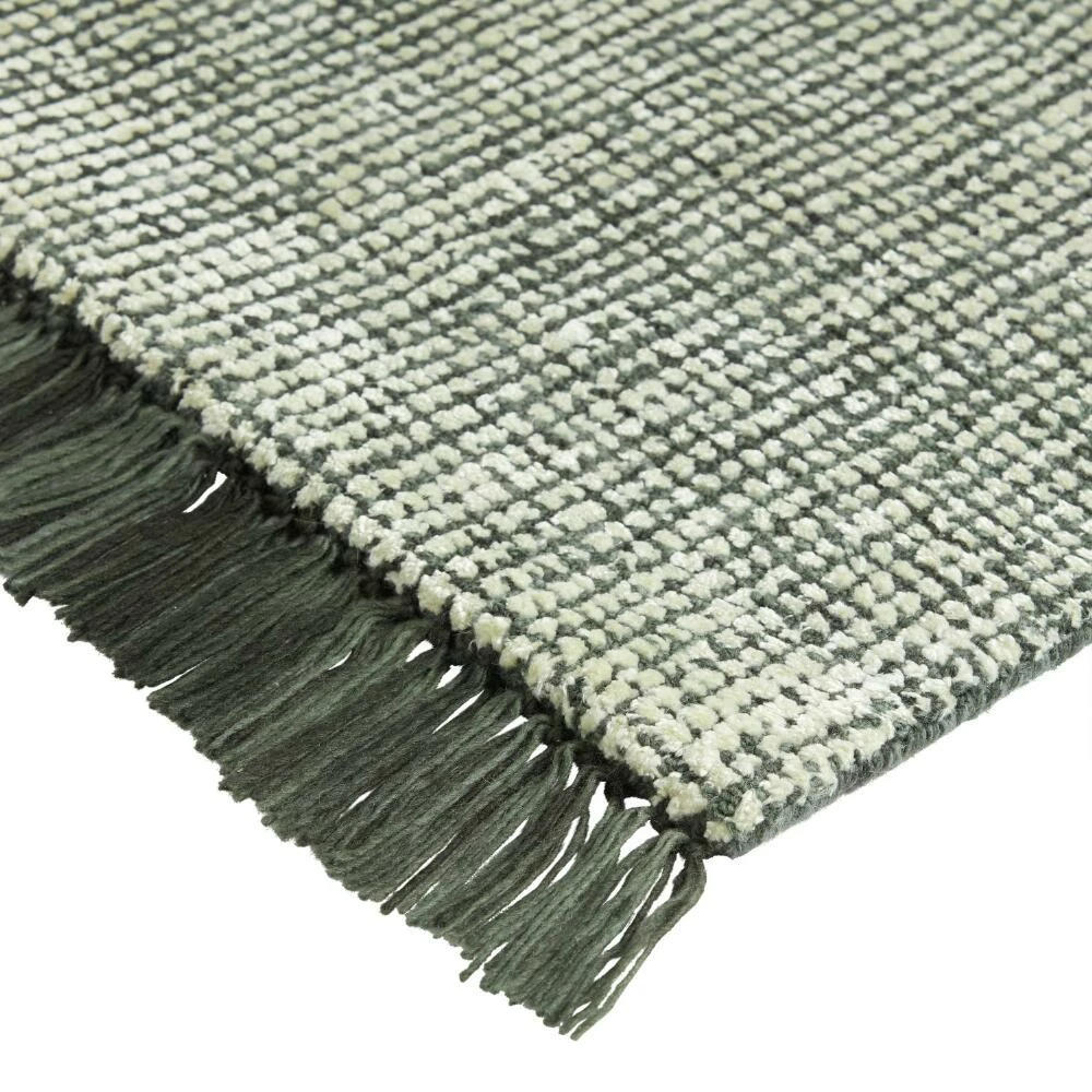 Our plush Oasis 6×9 rug is hand-looped by artisans of natural tufted wool and hand-spun viscose in a melange of dark sage-green and ivory colors. The silk-like viscose is raised over the wool base to create a sumptuous textured mosaic with a luxurious underfoot feel. An eye-catching foundation for any room that’s certified free of harmful chemicals, this large rug is finished with wool tassels at each end to complete its two-tone charm.