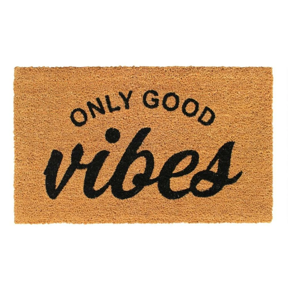 Spread an air of positivity as you enter your home with this contemporary-style natural coir doormat that’s printed with the upbeat phrase “Only good vibes.” Made of sustainable, tough coconut husk fibers that ensure durability, use it to keep the dirt outside while greeting guests with an uplifting welcome.