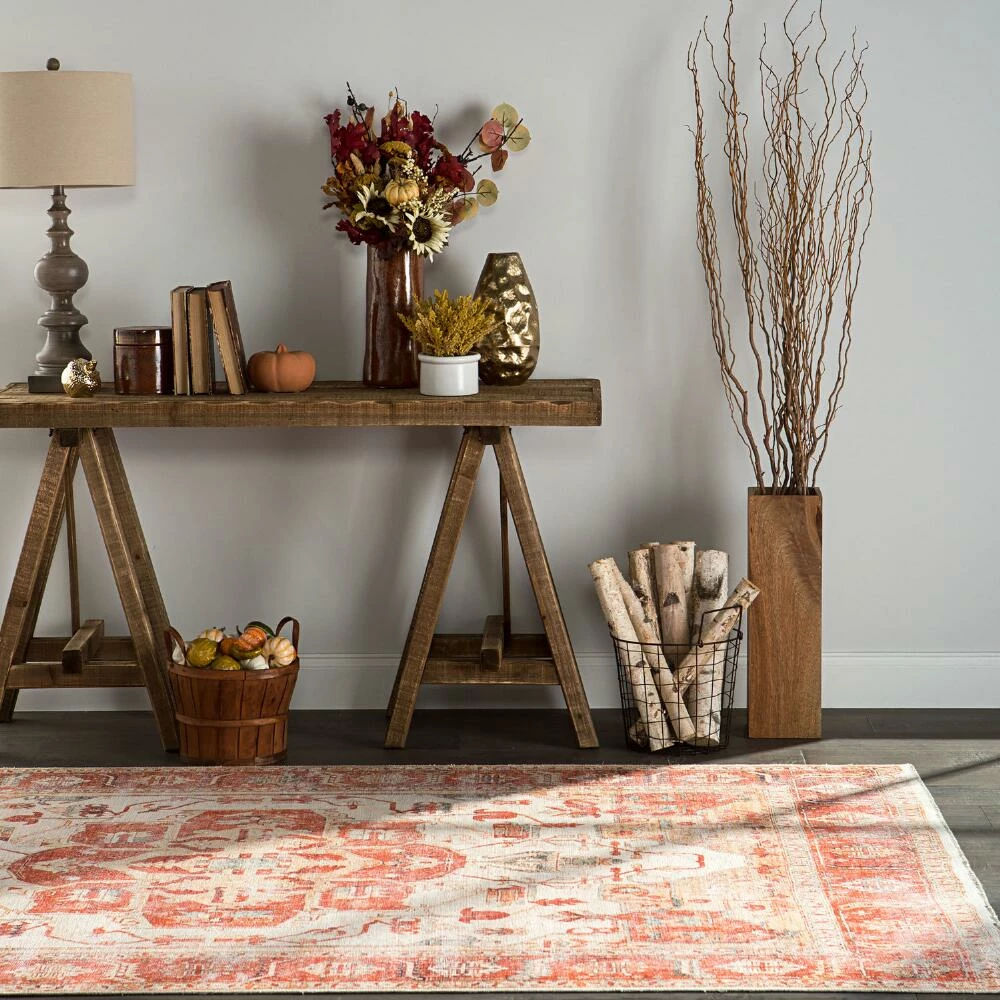Pairing modern power-loomed construction and a detailed digital-printing technique, the Serin area rug is both durable and timeless. With a medallion design in distressed orange, ivory and gray tones and an ultra-soft flat finish, this vintage-inspired Persian-style centerpiece revamps any room.