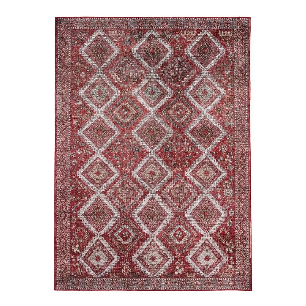 With a Persian-style diamond design in red and tan shades, our machine-washable rug is the perfect stress-free foundation for modern households. Featuring old-world motifs inspired by vintage kilim rugs, this exclusive area rug is a soft, durable and gorgeous addition to high-traffic areas in homes with kids and pets. You can literally toss it in your washing machine to clean away the inevitable spills and messes of daily living.