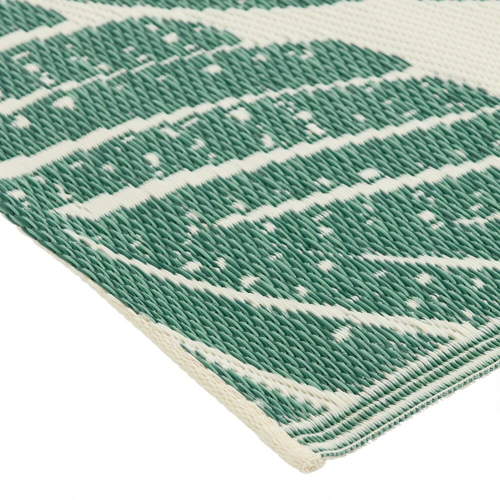 Durable, reversible and resistant to fading and stains, our 6×9 Rio outdoor floor mat features lush green palm leaves on an elegant antique-white background. Woven with 90% recycled materials, it adds a refreshing tropical design to patios, balconies and decks. Offering double the wear, this large two-sided mat is a smart choice for high-traffic outdoor spaces and lightweight for toting to the park or beach.