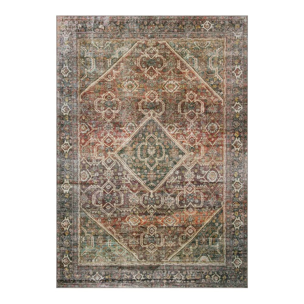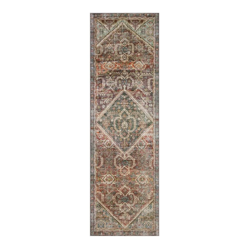 Featuring an innovative machine-washable fabrication, our rust and green Persian-style area rug is built to withstand the inevitable accidents of daily living. Cleaning up the stressful spills or messes on your vintage-inspired rug is now as easy as placing it in your washing machine. A World Market exclusive available in rug and runner sizes, its washable construction makes it perfect for high-traffic area in homes with kids and pets.