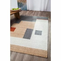 Handwoven by skilled artisans of 100% jute, this abstract Heera area rug features a modern geometric design in tan, ivory and gray. An earthy colorblocked rug with pops of red and aqua, its dense natural-fiber flatweave is suitably durable for high-traffic areas and only grows softer over time. GoodWeave-certified to support ending child labor in the rug industry, this ethically sourced accent promotes safe working conditions worldwide.