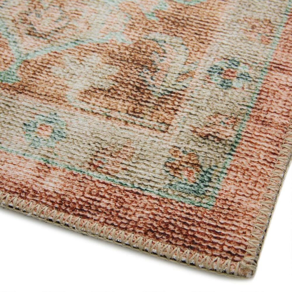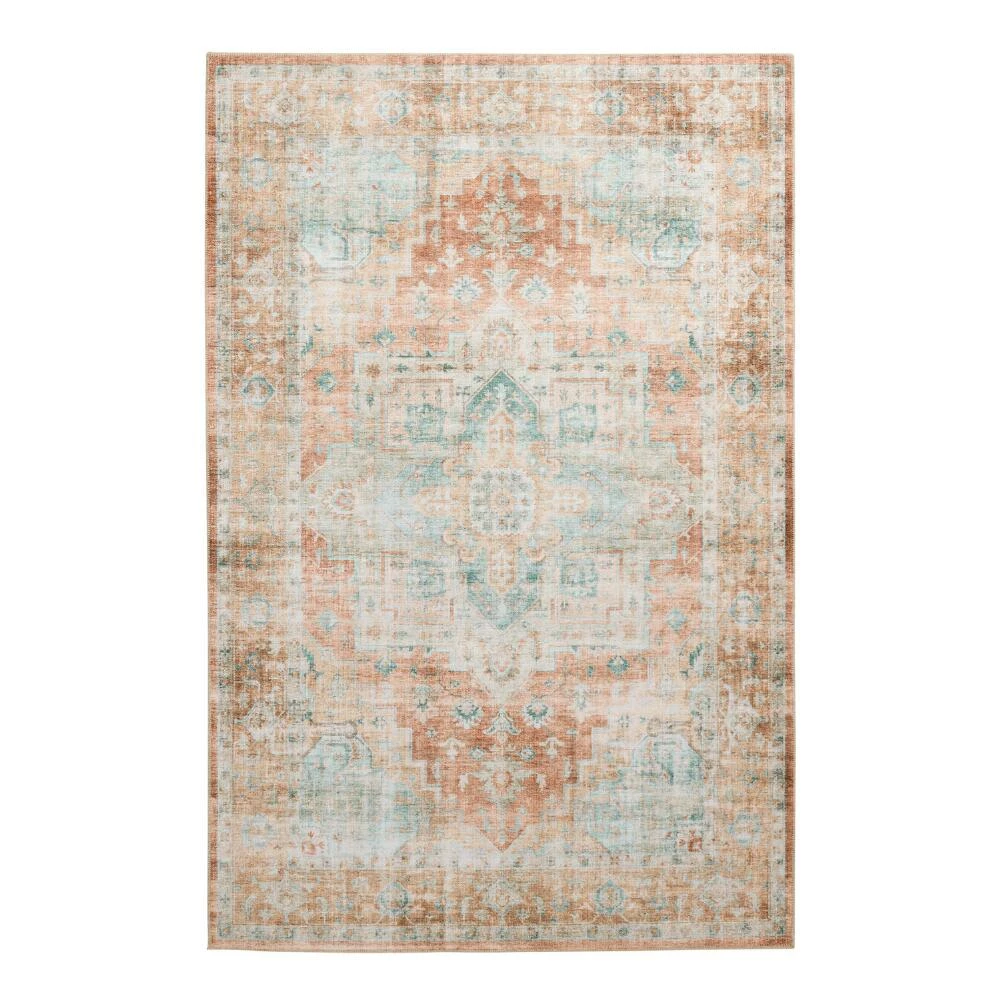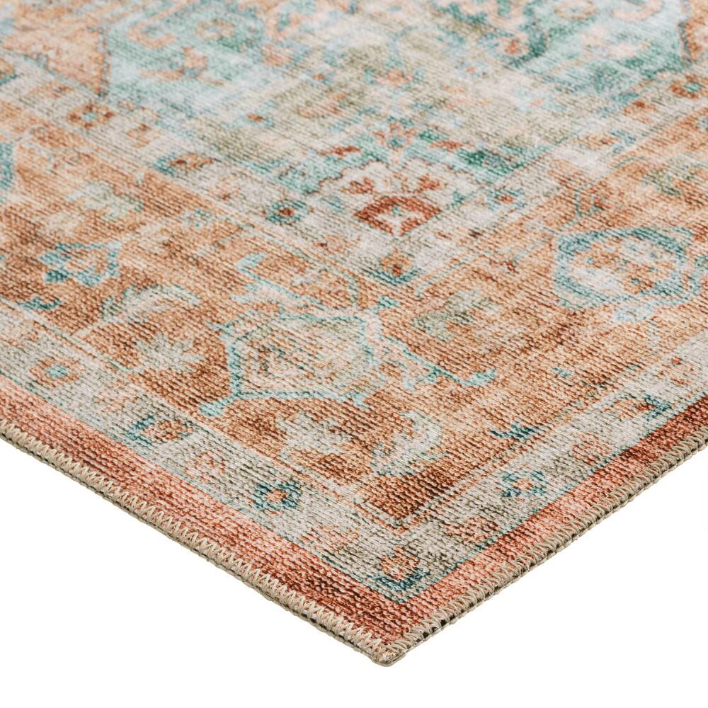 Presenting old-world floral medallions in a distressed palette of terracotta and aqua, the Gabriela area rug is a durable foundation for any room with a timeless Persian-style design. Available in rug and runner sizes, its stain-resistant construction is comfortably textured, resilient for homes with kids and conveniently pet friendly. Its soft pops of color and classic vintage-inspired motifs add new visual interest to high-traffic areas.