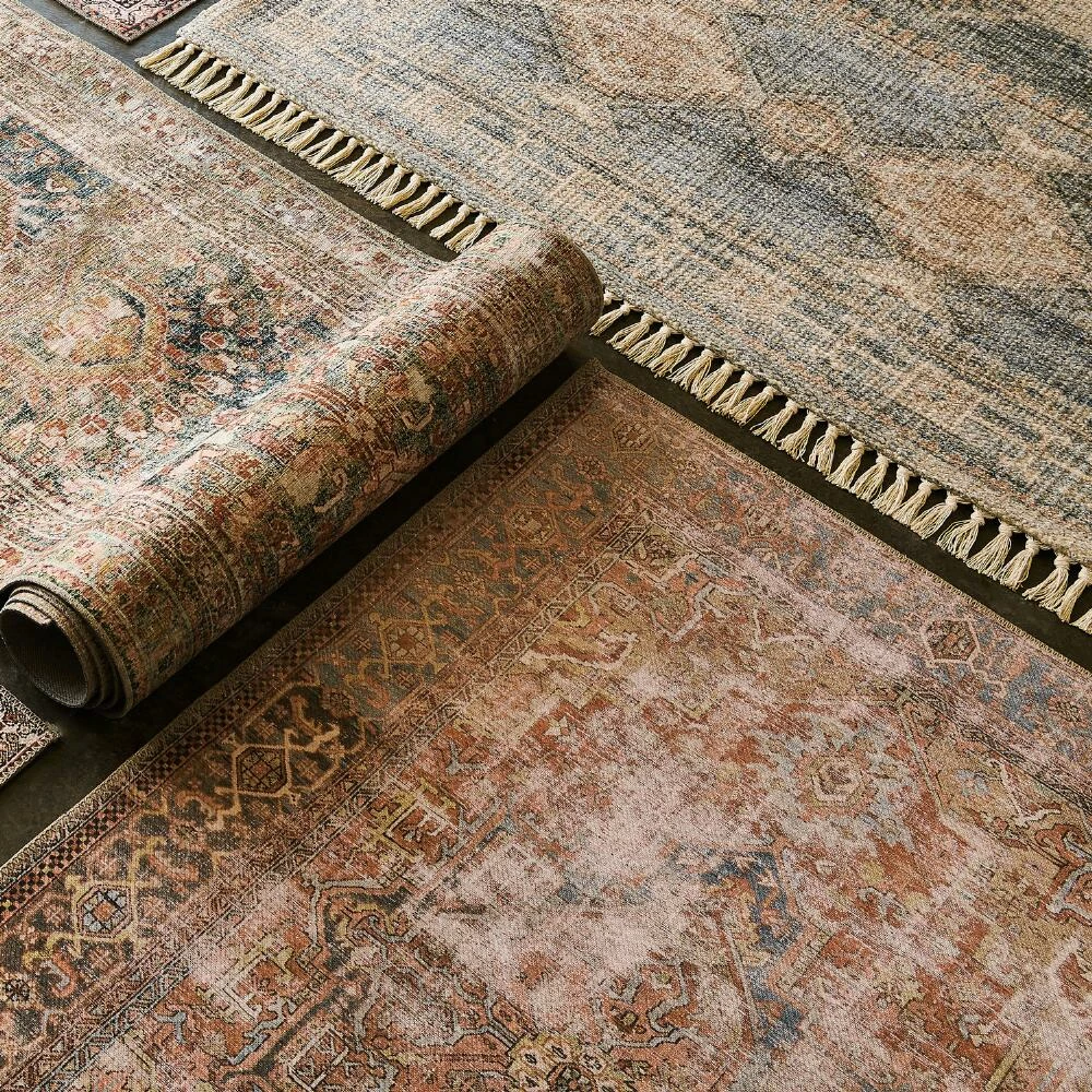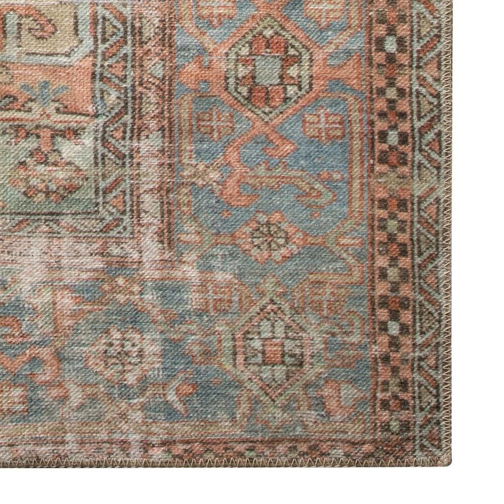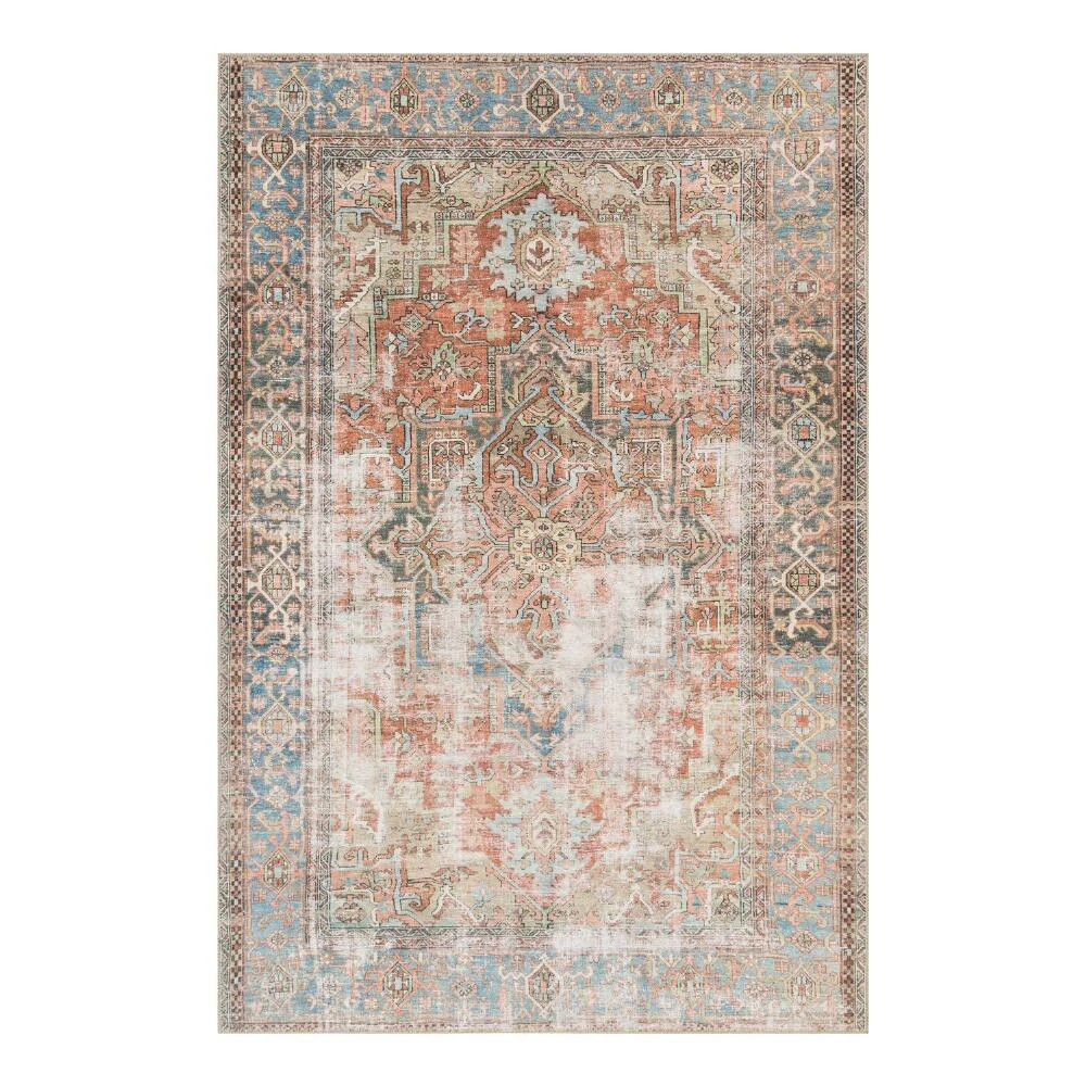 Featuring a pleasing texture that displays each individual knot, the Lauren Persian-style area rug showcases a distressed print in terracotta and blue hues. Recreating the look of a vintage rug with advanced modern techniques, this timeless foundation is easy to keep clean, shed-resistant and suitable for homes with children or pets.