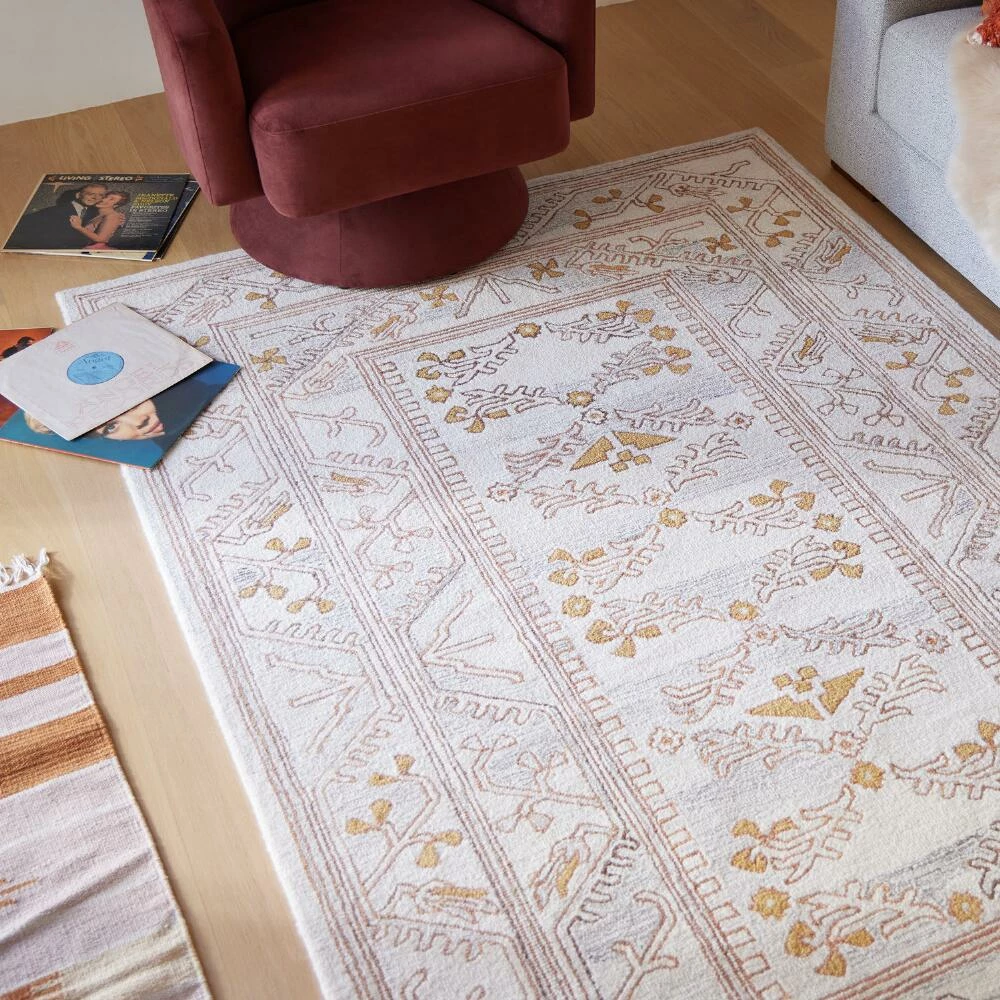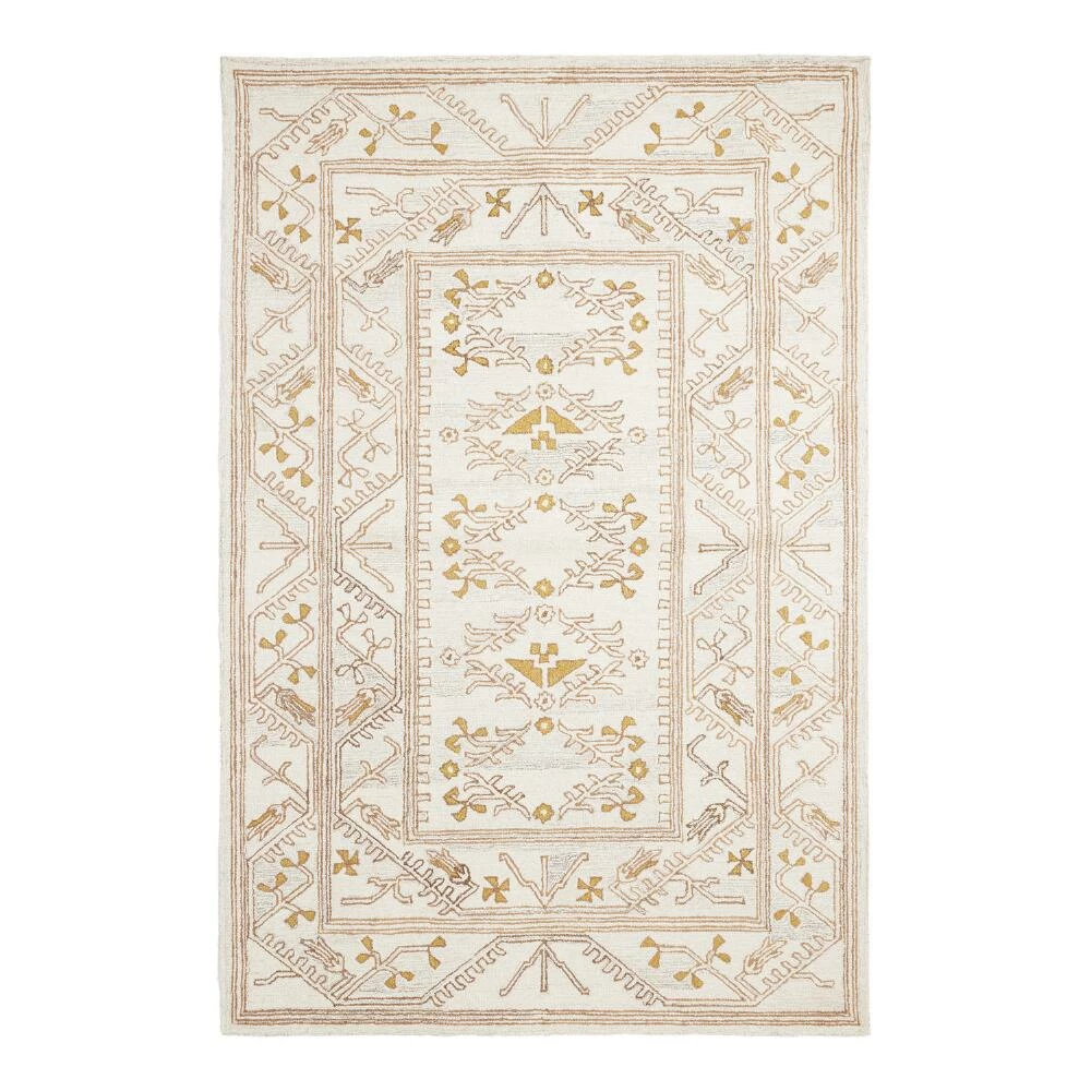 Hand-looped of tufted wool by Indian artisans, the Vera 6×9 area rug features a Persian-inspired design in ivory and gray with a soft touch of golden yellow. Its plush 100% natural wool construction makes it a perfect vintage-style update for the bedroom or living room. Gently distressed to enhance its neutral tones, this versatile foundation is a match for traditional, modern farmhouse and mid-century decor alike.
